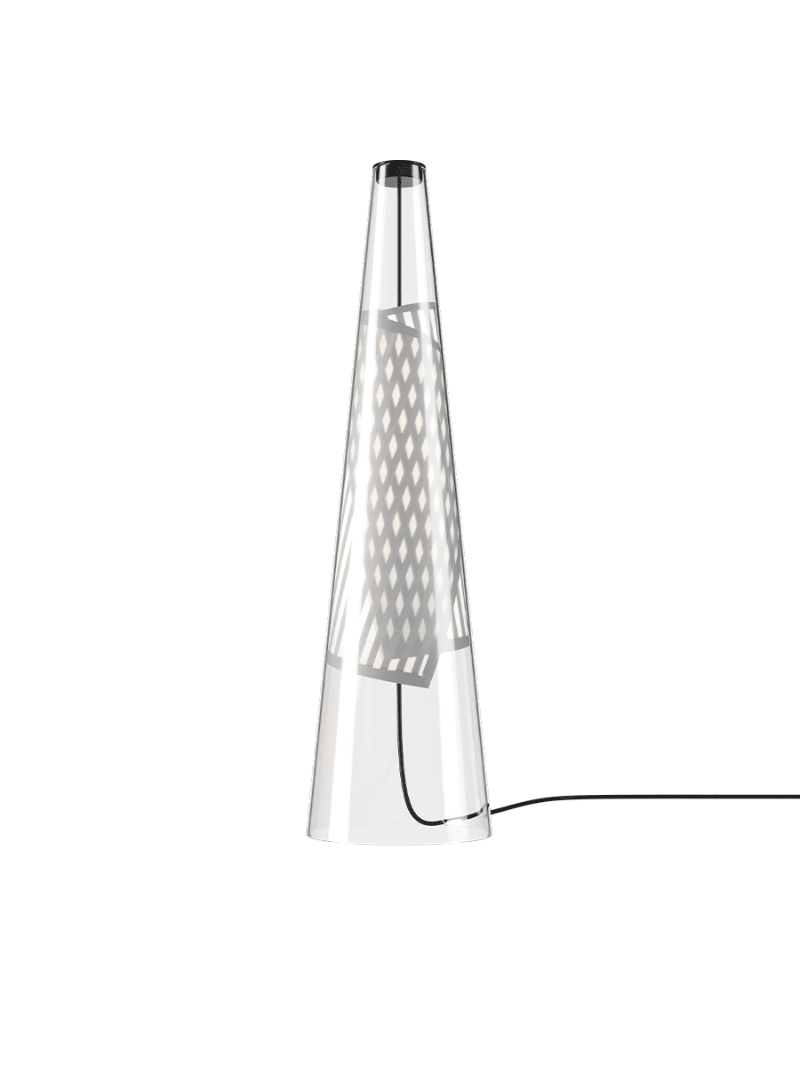 La tecnologia racchiusa in Cono di Luce ne definisce l’identità. Un circuito stampato flessibile utilizzato in modo inedito per l’industry – racchiuso in un elemento semplice come un cono di Pyrex® trasparente – conferisce alla lampada un dualismo leggibile tra acceso e spento.