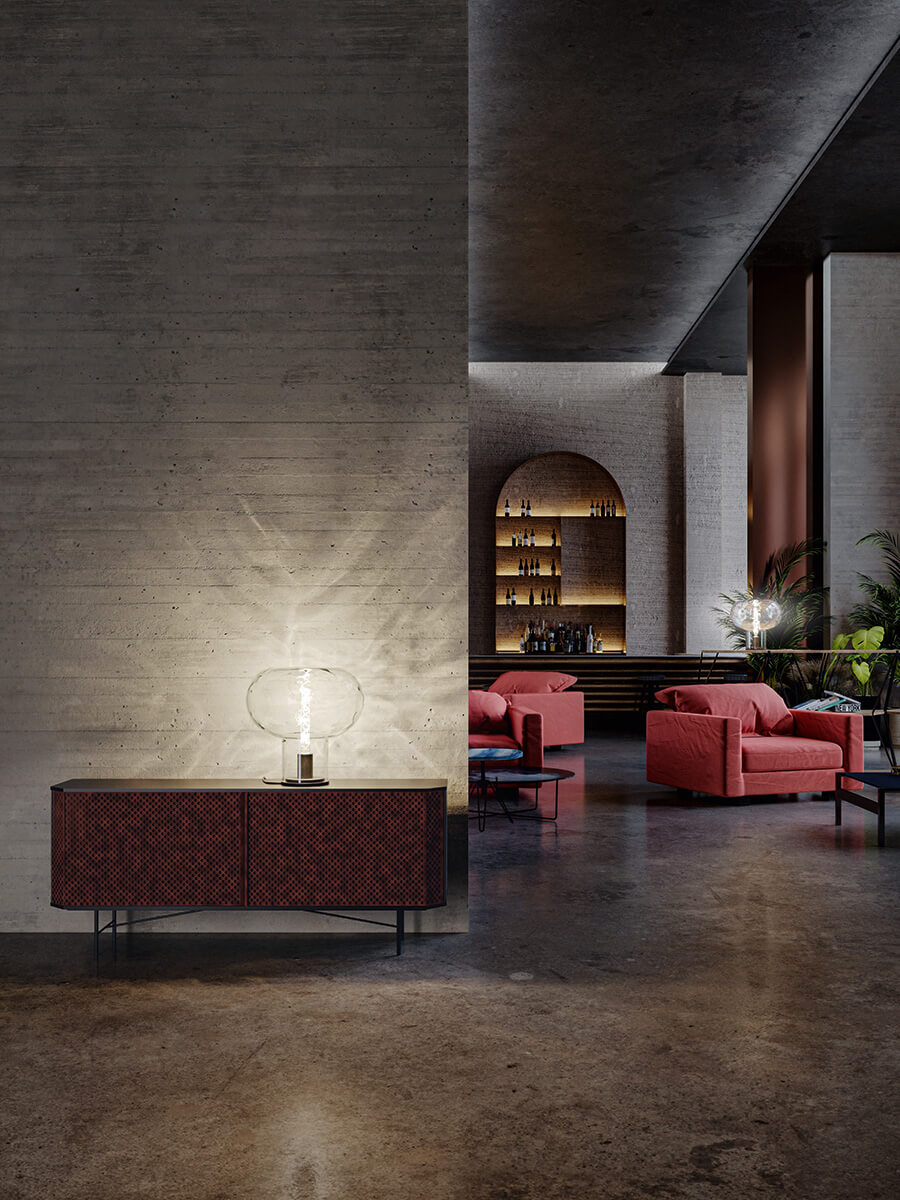 Magic Mushroom grazie alla sua materialità è perfetta accanto ad un divano in uno spazio living piuttosto che su una madia all’interno di una camera da letto.
