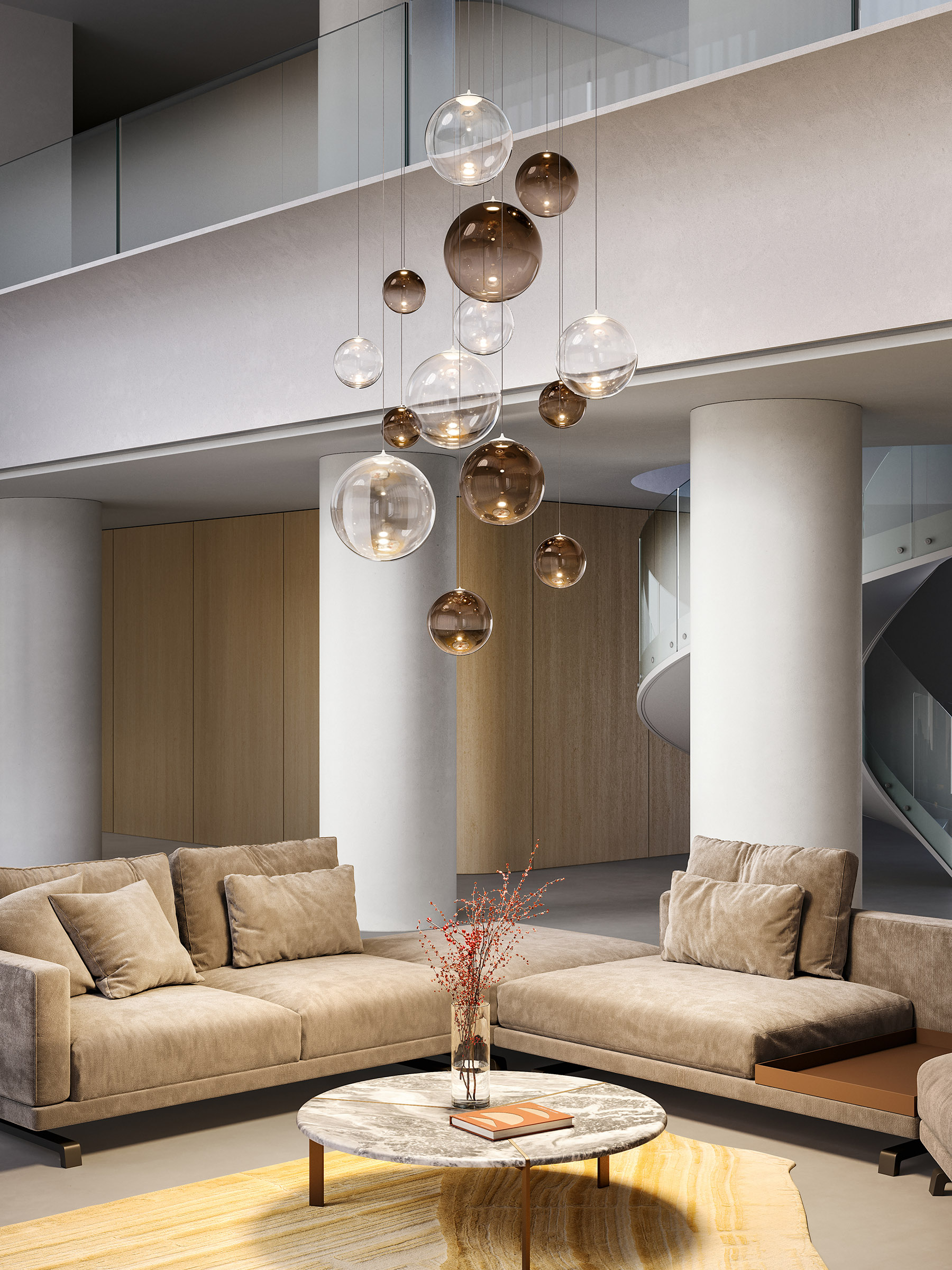 Grazie alla sua versatilità e alle ampie possibilità di personalizzazione ‒ accostando sfere di diverse dimensioni e sfumature ‒, Random Solo si presta a illuminare e decorare una vasta gamma di ambienti, dal residenziale al contract, fino all’hospitality e al F&B. In parallelo alle finiture, si evolve anche la struttura, ora disponibile con cavo e montatura in silicone nero.