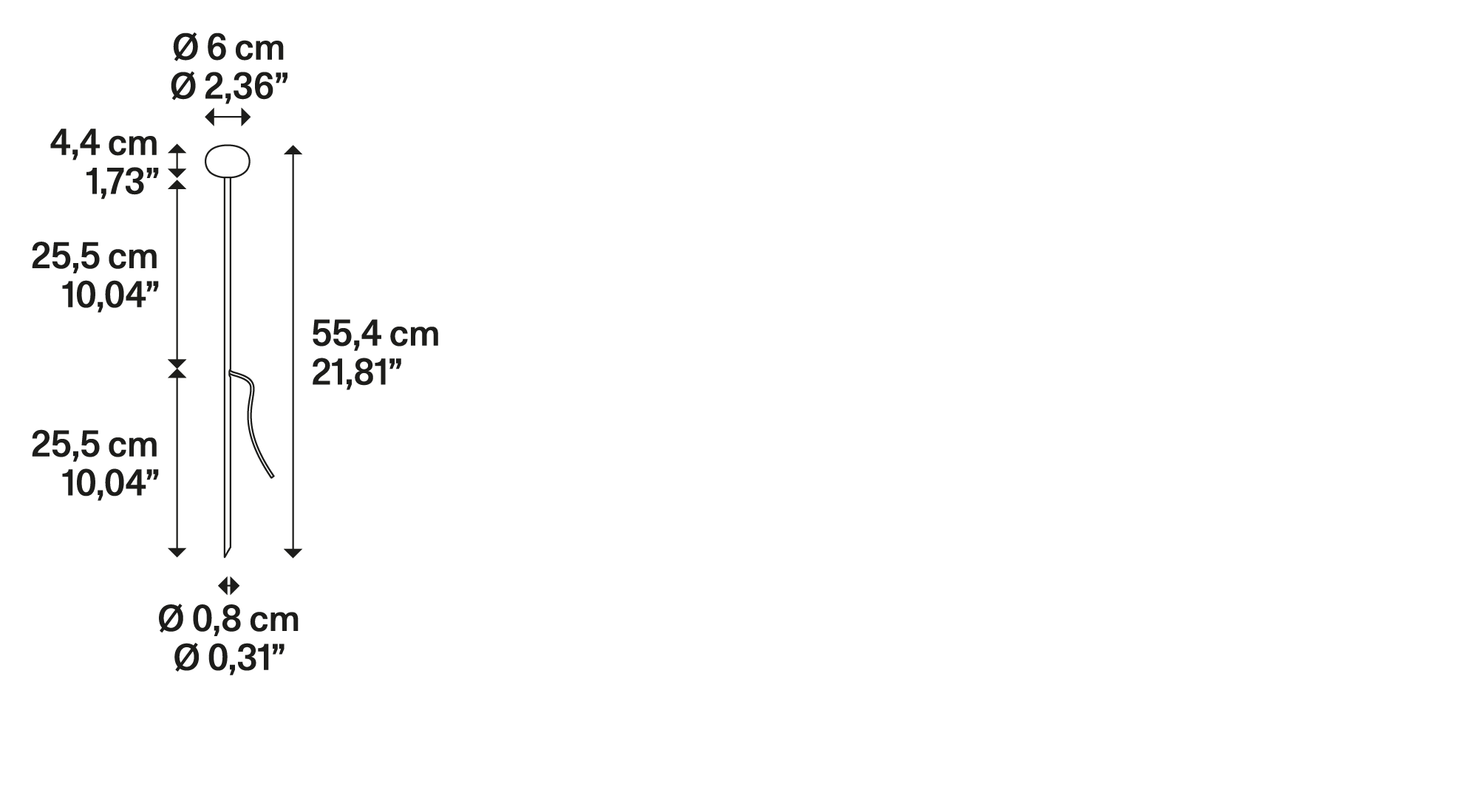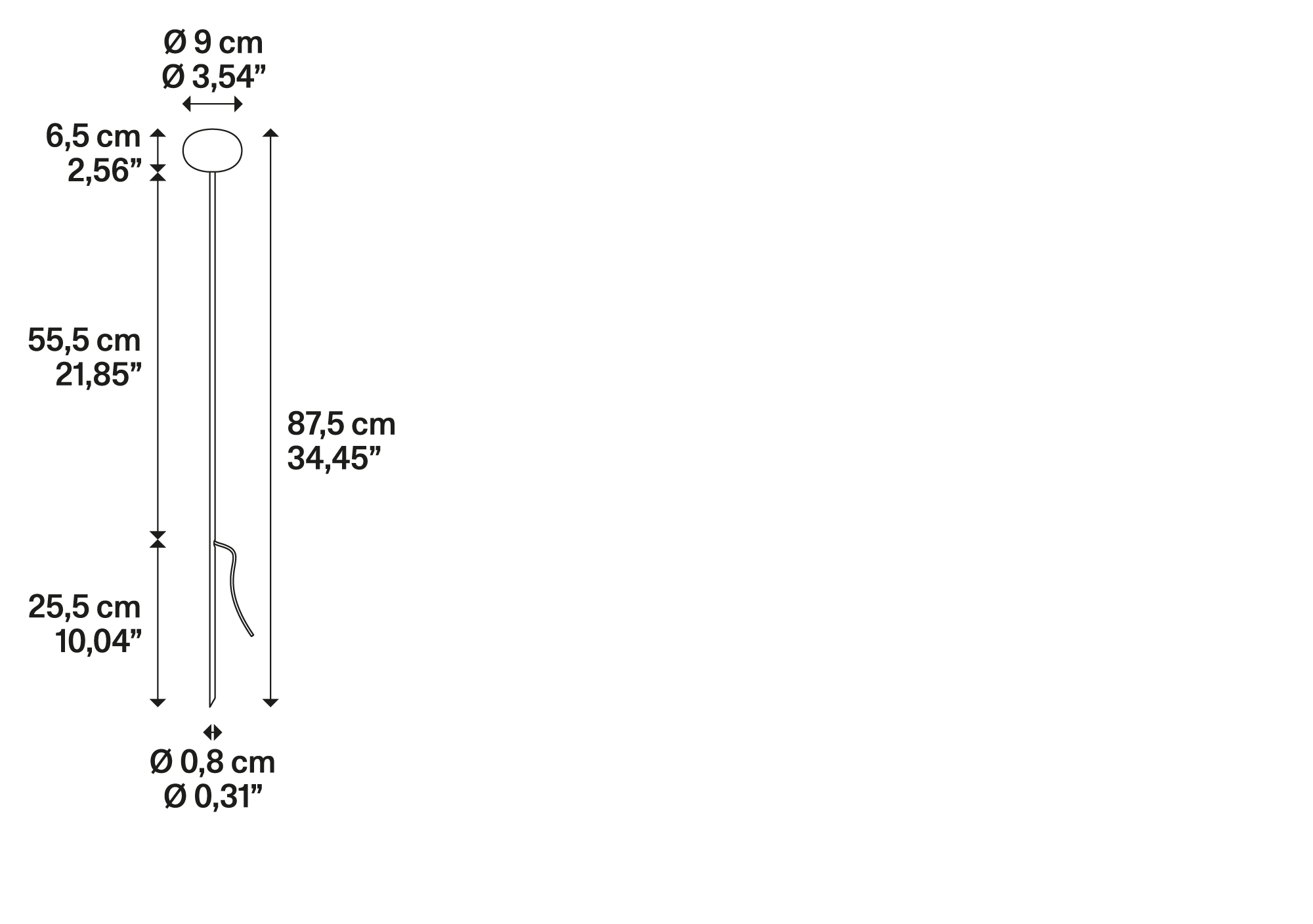 The stem can be paired with three organically shaped diffusers – two flattened sphere versions inspired by the delicacy of dandelion flowers, and an elongated one reminiscent of the lightness of slender stalks – designed to blend naturally into the landscape and compose evocative lighting scenes. Each configuration interacts with the surrounding environment, creating atmospheres where light, shadows, and shapes merge to convey the impression of a natural extension of the vegetation itself.