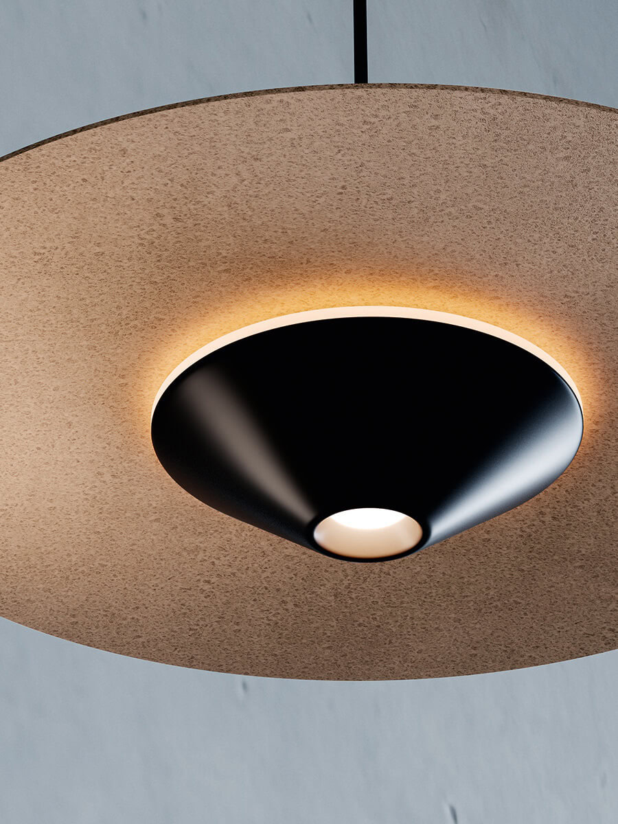 U.F.O. è una lampada a sospensione che prende il nome dall’immaginario collettivo legato agli oggetti volanti non identificati.