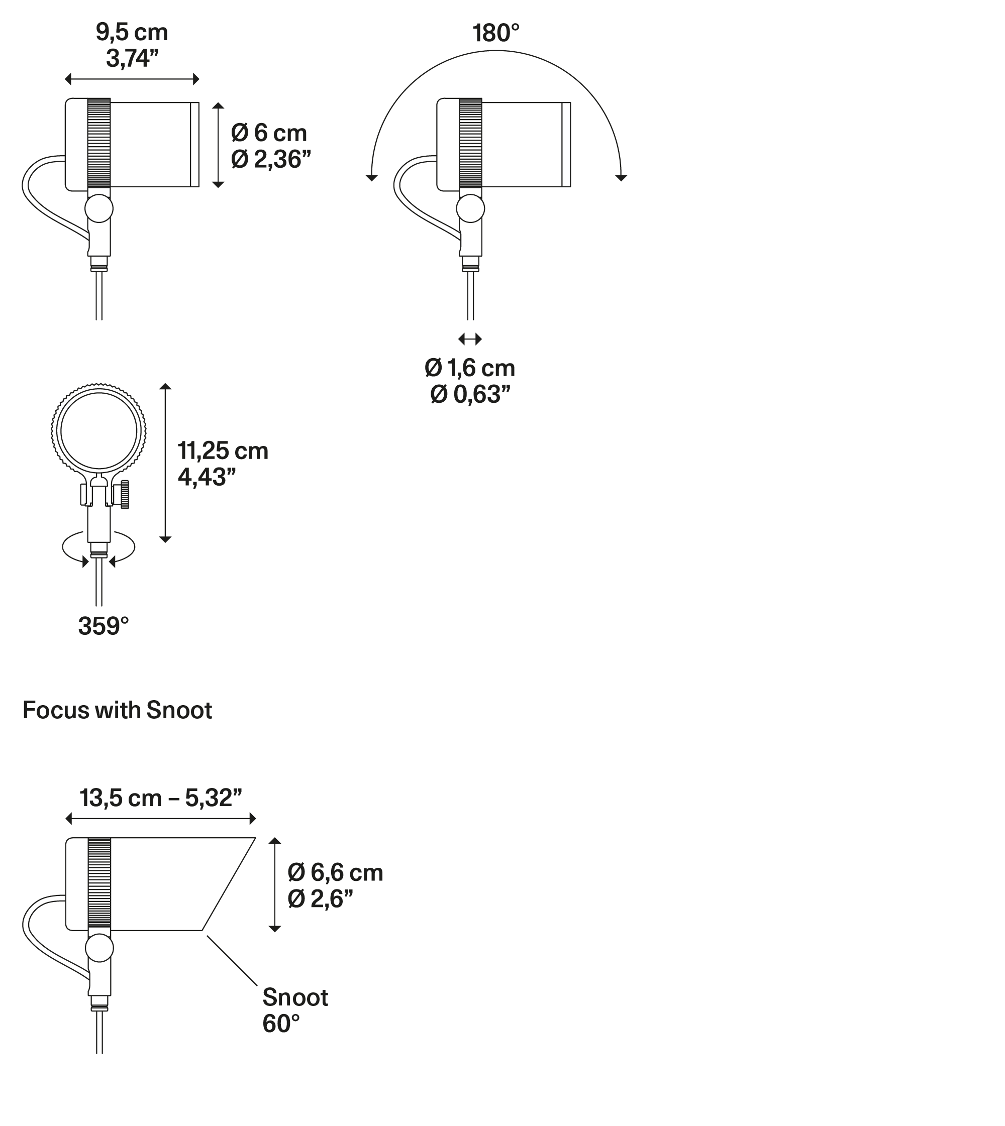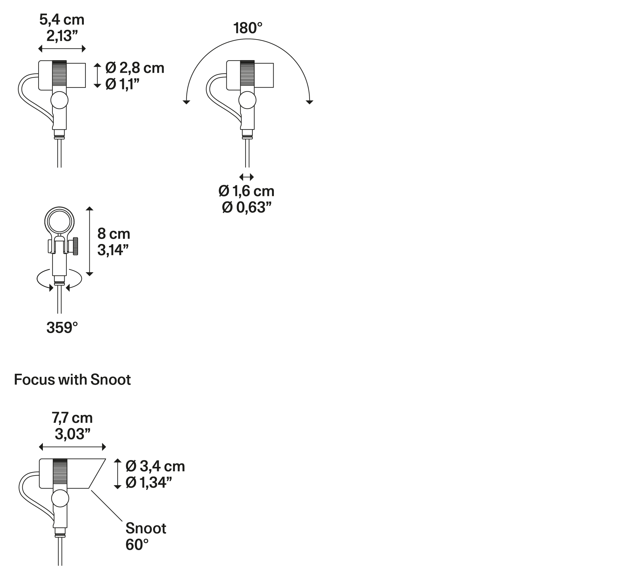 | Focus 60 | Source lumineuse | Monture | Code 2200 K | Code 2700 K | Code 3000 K | ||||||||||||||||||||