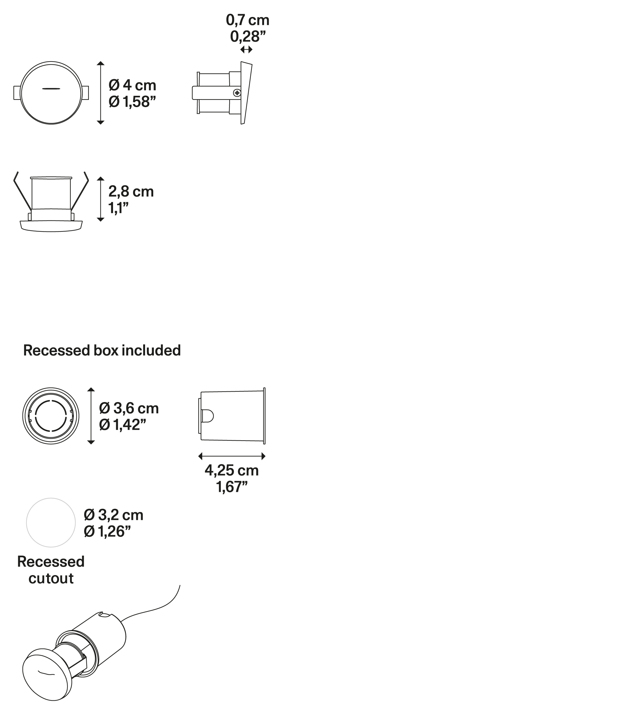 1,2 W CRI ≥ 90 MacAdam < 3–Step Cable length 0,5 m Rubber cable Section 2× AWG 20 |