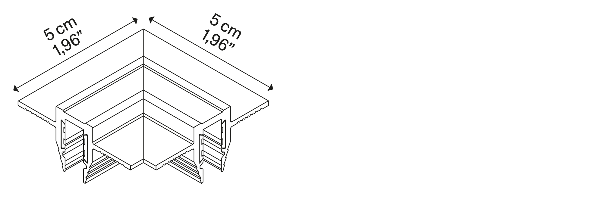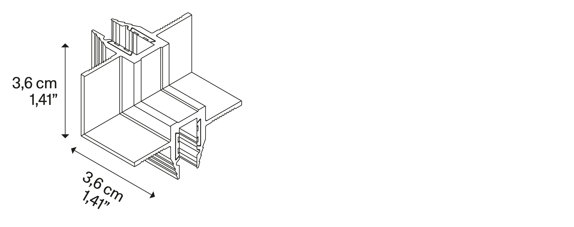 Elemento angolare a 90° per collegare due segmenti di binario Trimless Recessed sullo stesso piano.