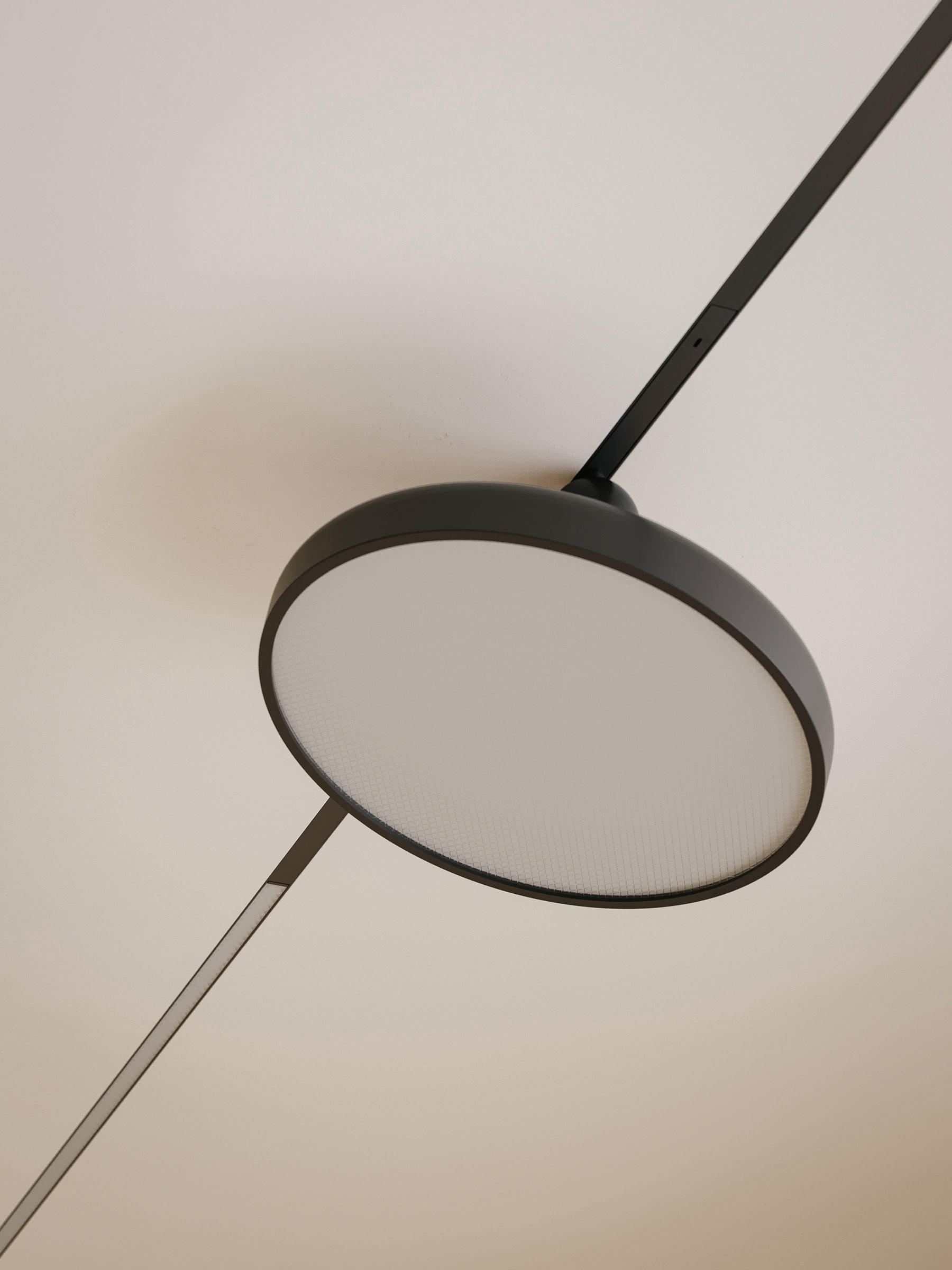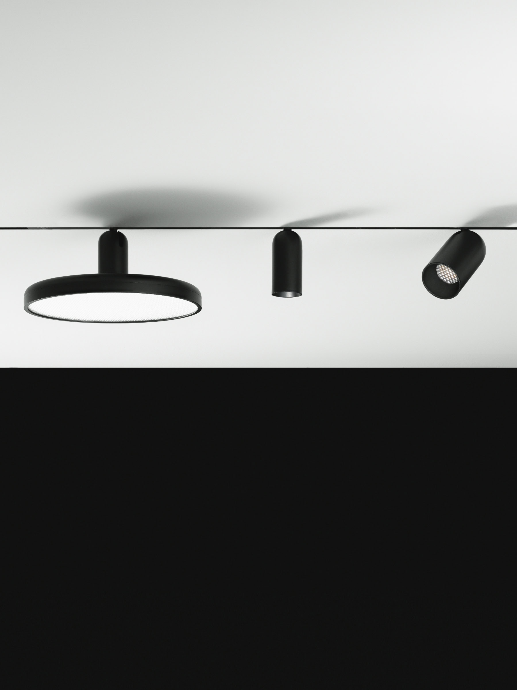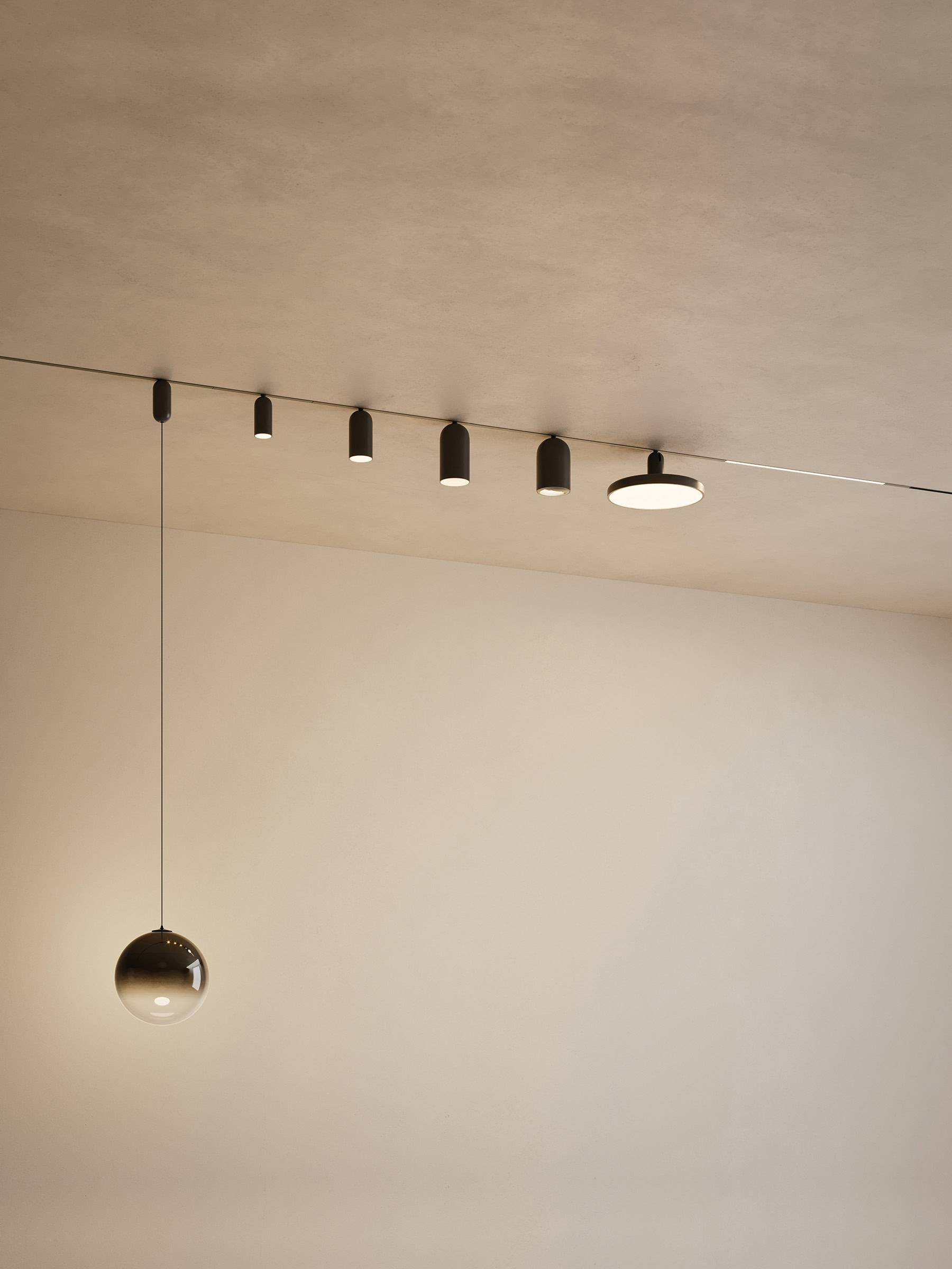 Una cluster clip dedicata consente di agganciare al binario tutte le sospensioni del catalogo Lodes, di spostarle e di riposizionarle in modo facile e intuitivo. Versatile e dinamico, è disponibile in raffinate finiture opache e in tre versioni che ampliano le possibilità di applicazione: dal segno invisibile dell’incasso al sottile profilo grafico della surface, fino alla doppia emissione luminosa della sospensione. In aggiunta alle sospensioni, il binario integra una gamma di moduli di luce architetturale che spazia dallo spotlight al wallwasher, includendo la linea di luce e la plafoniera compatta.