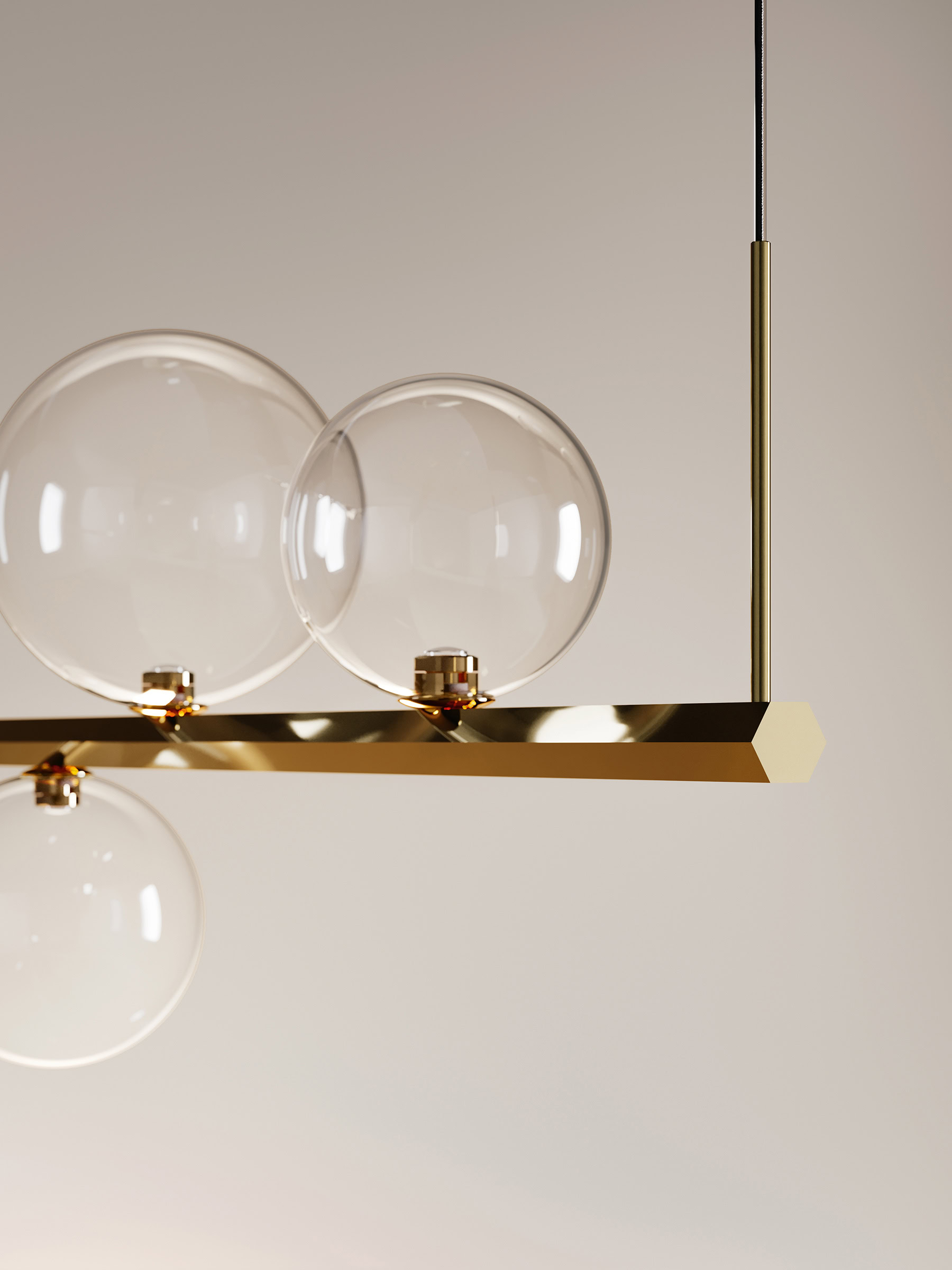 Lodes ha creato un oggetto altamente funzionale posizionando dei LED nella parte inferiore della barra: questa intuizione completa la luce già diffusa dalle sfere e garantisce una luminosità uniforme verso il basso, ideale per illuminare un piano sottostante. Random Stick è disponibile in due versioni: da 100 cm con quattro sfere e due LED può essere posizionata sopra un tavolo da pranzo o una scrivania; da 150 cm con sei sfere e tre LED consente di illuminare superfici più lunghe, come il bancone di un cocktail bar o in ambienti retail, e può essere installata anche in ripetizione.
