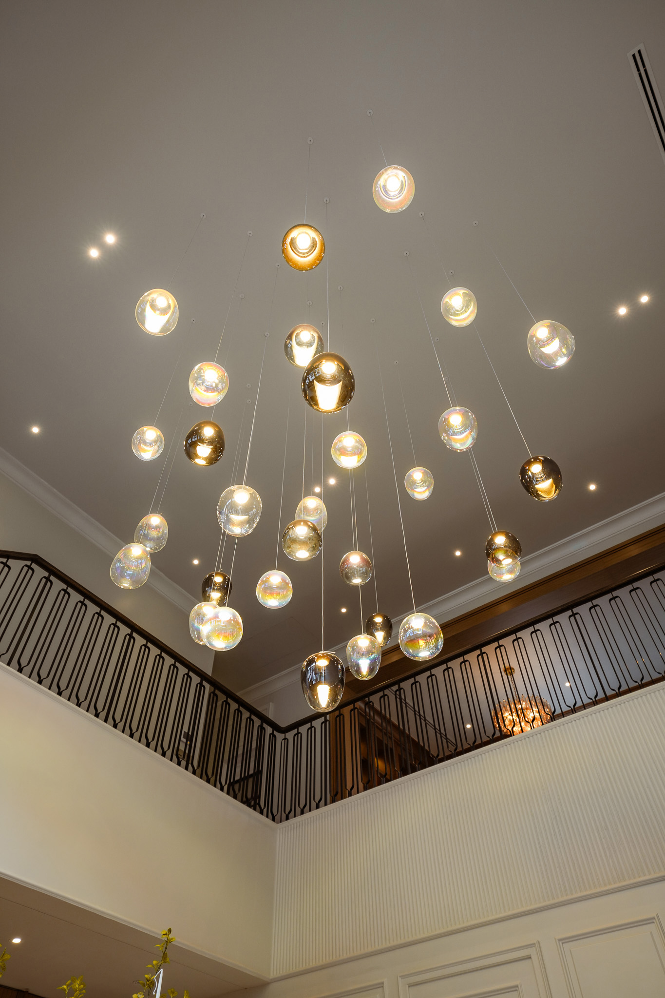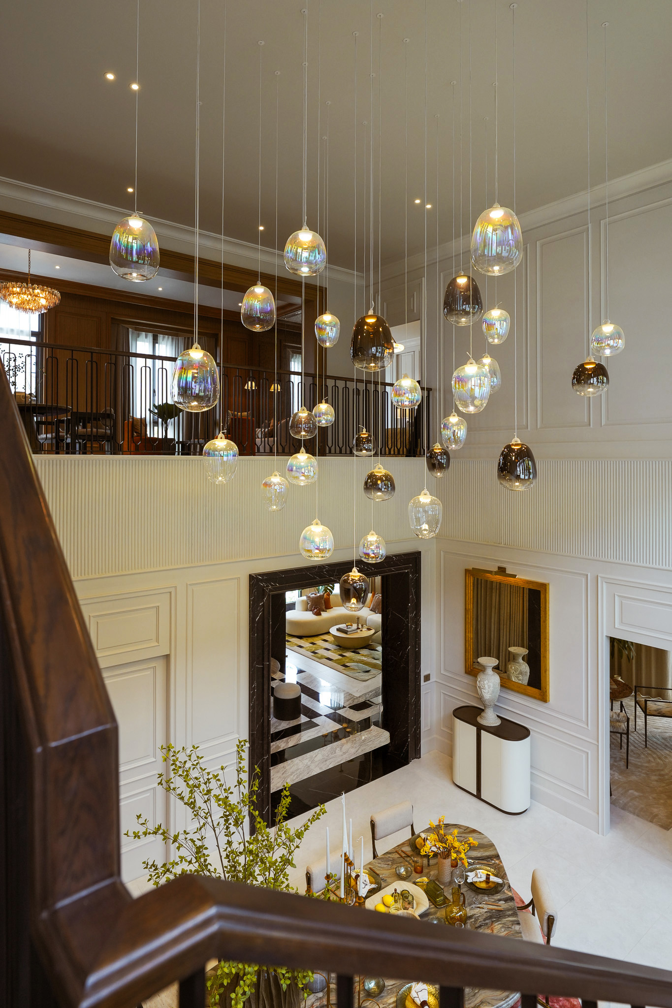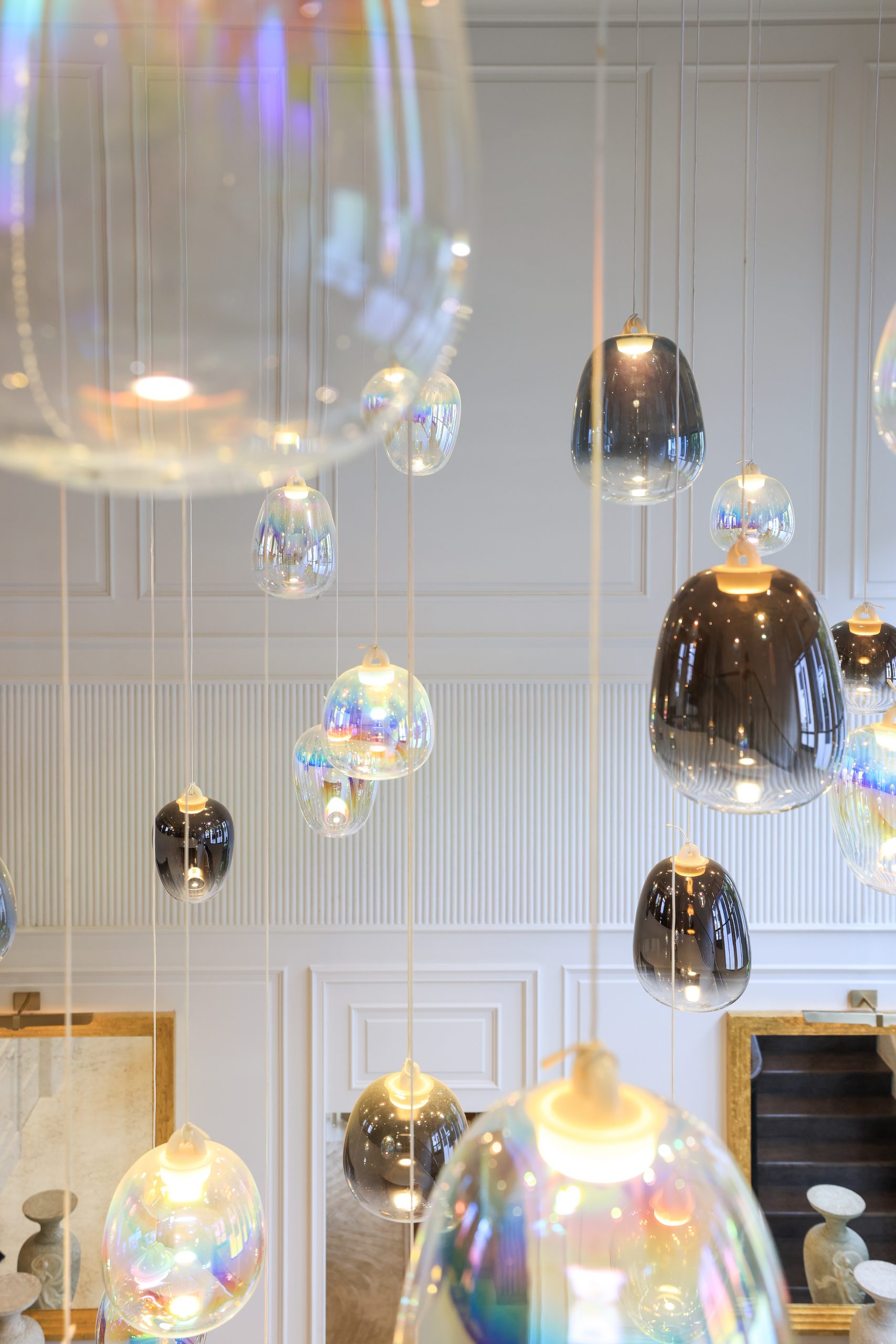 La trasparenza del vetro e la leggerezza dell’installazione fanno fluttuare la luce nello spazio, definendo un gesto raffinato che aggiunge movimento, carattere e un tocco di poesia alla residenza.