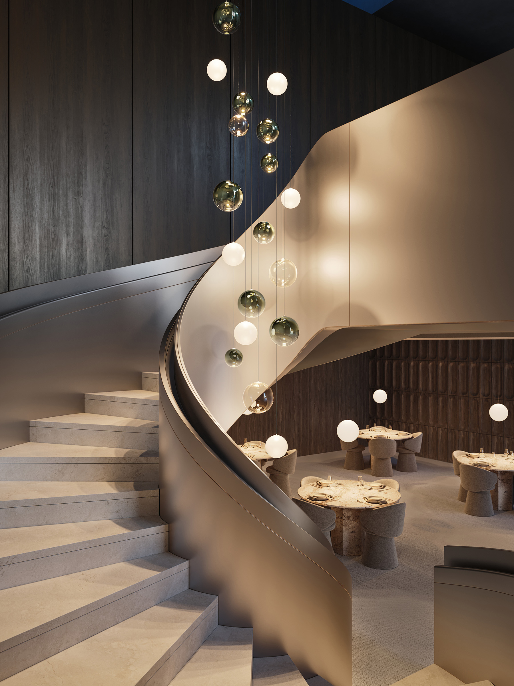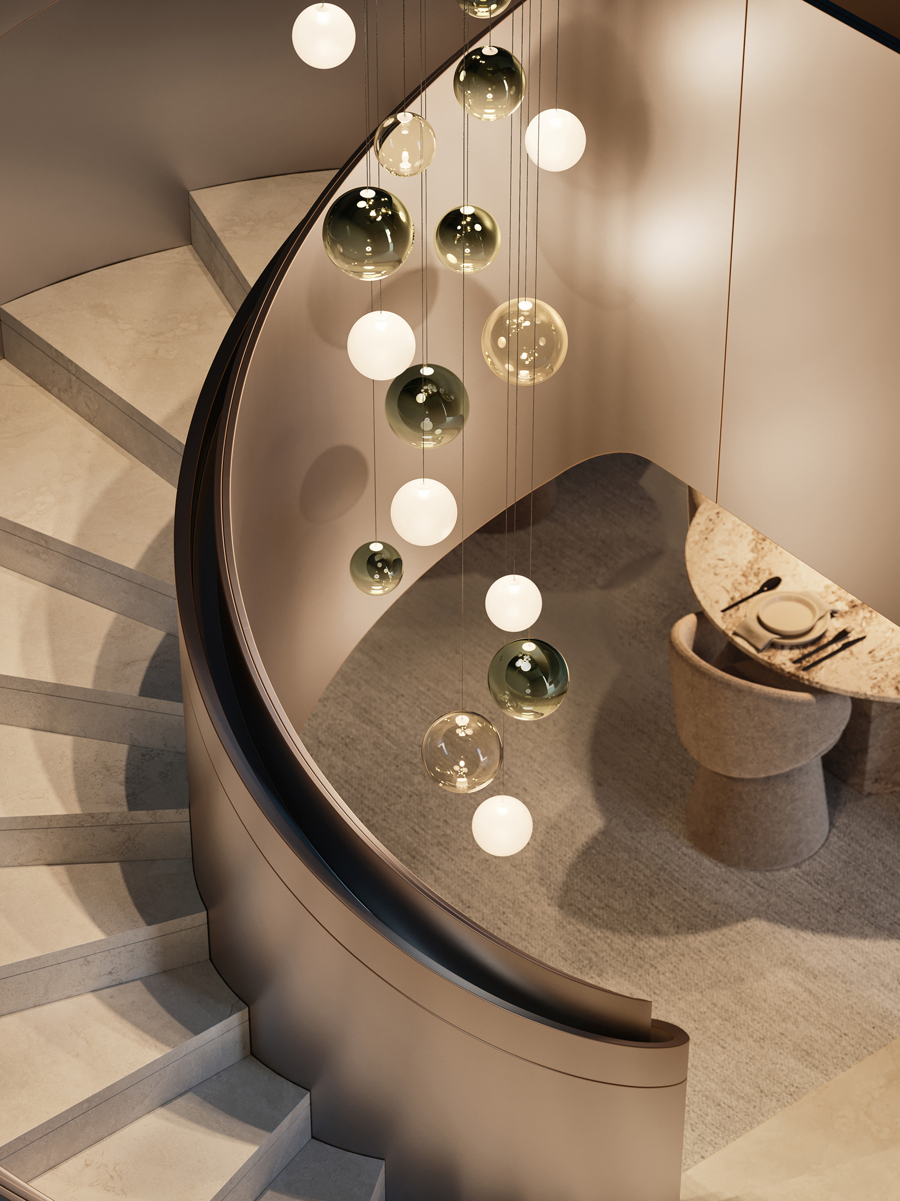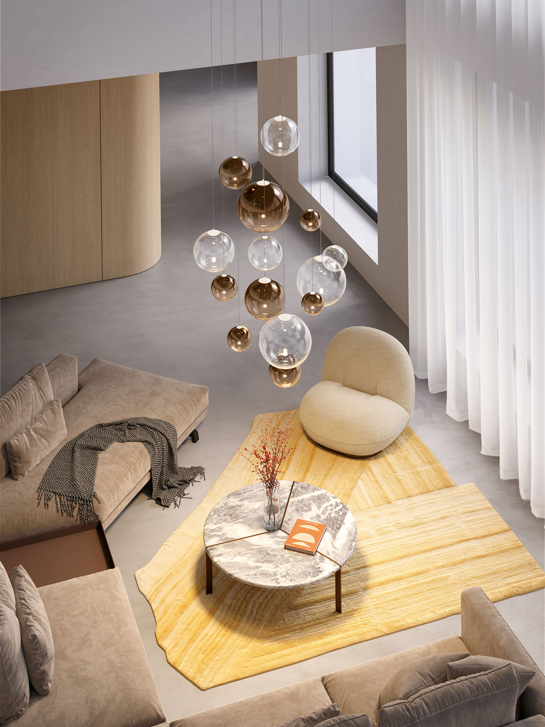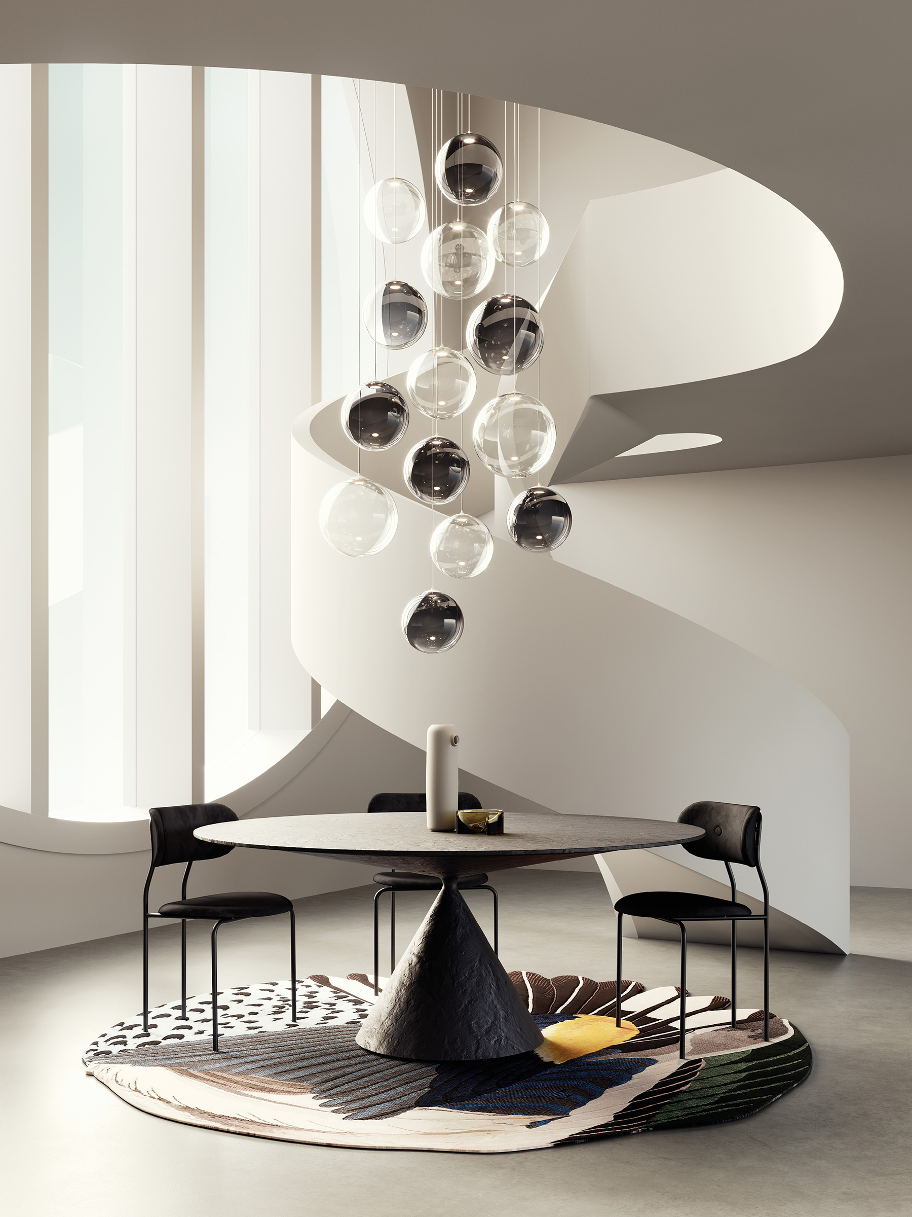 Sei sfere perfette che fluttuano nell’aria come leggere bolle di vetro. Random Solo rivisita il concetto della lampada a sospensione Random separando l’originale cluster a tre elementi e liberando l’individualità delle forme sferiche, che fluttuano come bolle di luce lasciando immaginare composizioni di armonie luminose. Grazie alla nuova sfera da 10 cm, sono ora sei le dimensioni e sette le finiture disponibili, offrendo ampia libertà di arredamento, sia come punti luce sospesi singolarmente che in leggere e vivaci composizioni multiple su cluster.
